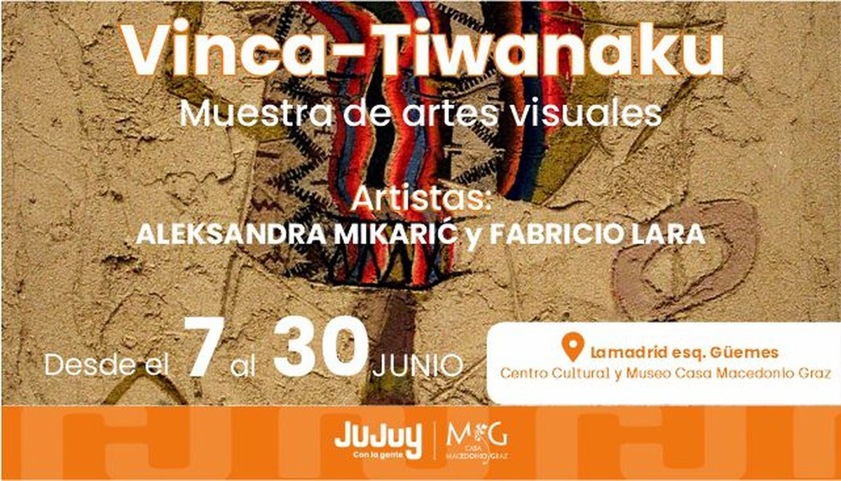 El sábado 7 de junio a las 19:30 horas quedará inaugurada la muestra de artes visuales Vina – Tiwanaku en el Centro Cultural y Museo Casa Macedonio Graz, ubicado en la esquina de Lamadrid y Güemes, en San Salvador de Jujuy. La propuesta reúne obras de los artistas Aleksandra Mikari y Fabricio Lara, y podrá visitarse hasta el 30 de junio.